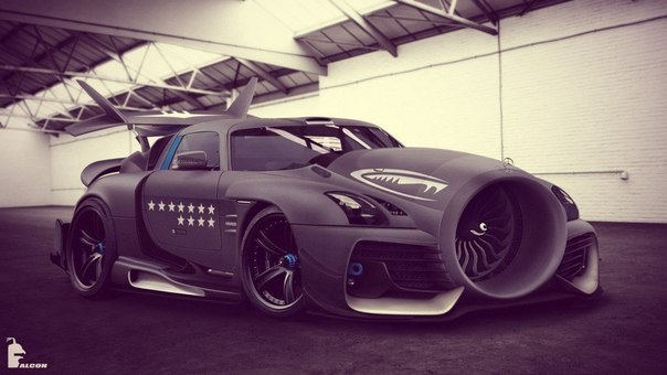 Спортивных автомобилей в которые я влюблена слишком много. Но вот недавно увидела на просторах интернета не автомобиль, а самолёт, в прямом смысле этого слова. Вот он, Mercedes SLS AMG c турбиной от самолета)